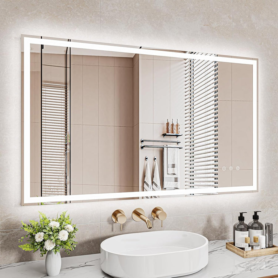 Badezimmerspiegel Led Badspiegel, Speicherfunktion, Touch-Schalter, Druckknopf, Dimmbar, 3 Lichtfarb