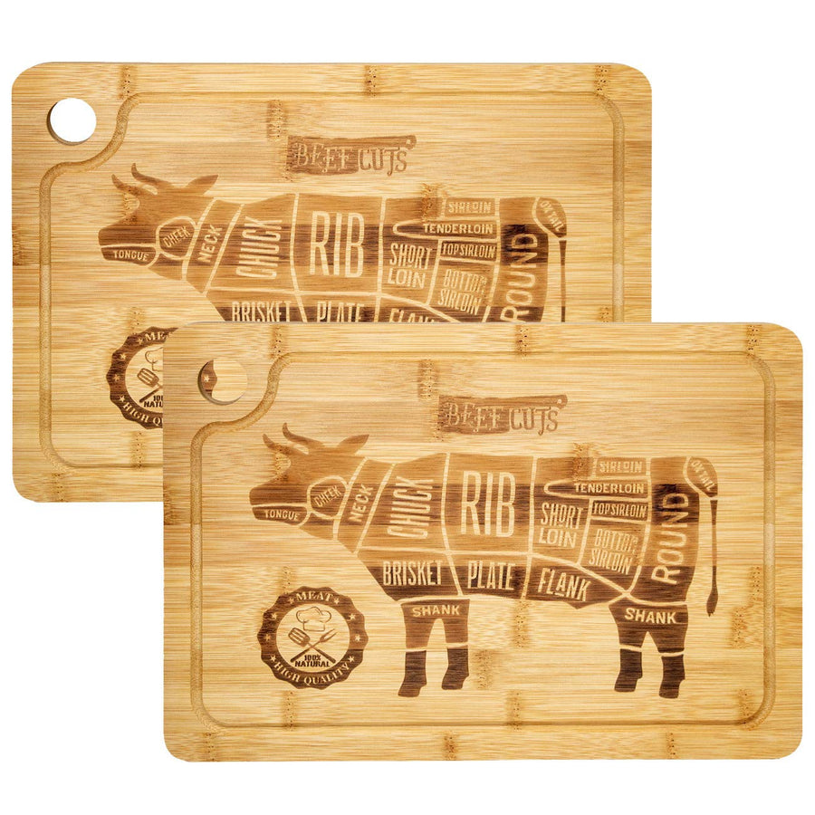 DuneDesign Steakteller aus Bambus 2er Set – massive Holz Steakbretter 33x23 cm, 2 cm dick – stilvoll