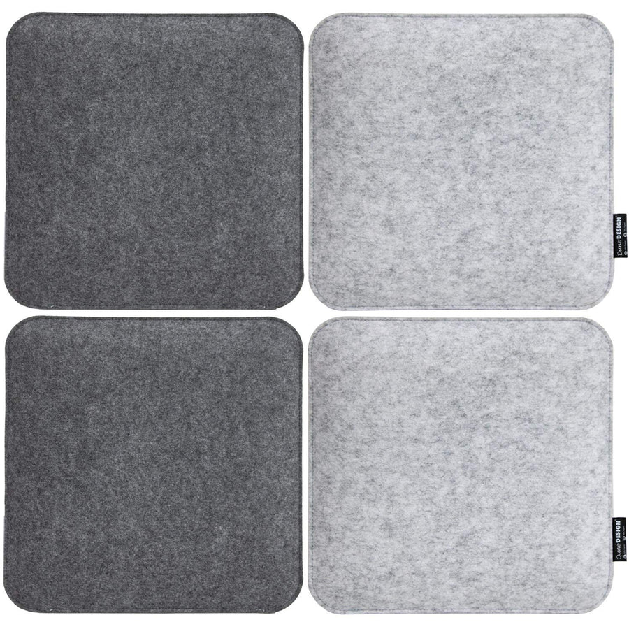 DuneDesign 4er Set Filz Sitzkissen 35x35x3 cm eckig - wendbare Stuhlkissen Hellgrau/Anthrazit als Si