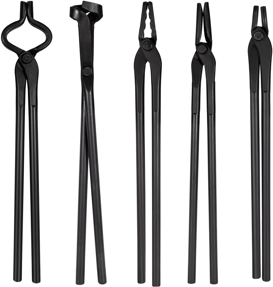 Schmiedezangen-Set für Amboss, Messerherstellungs-Set, 5-teilig, inkl. flacher Zange, quadratischer