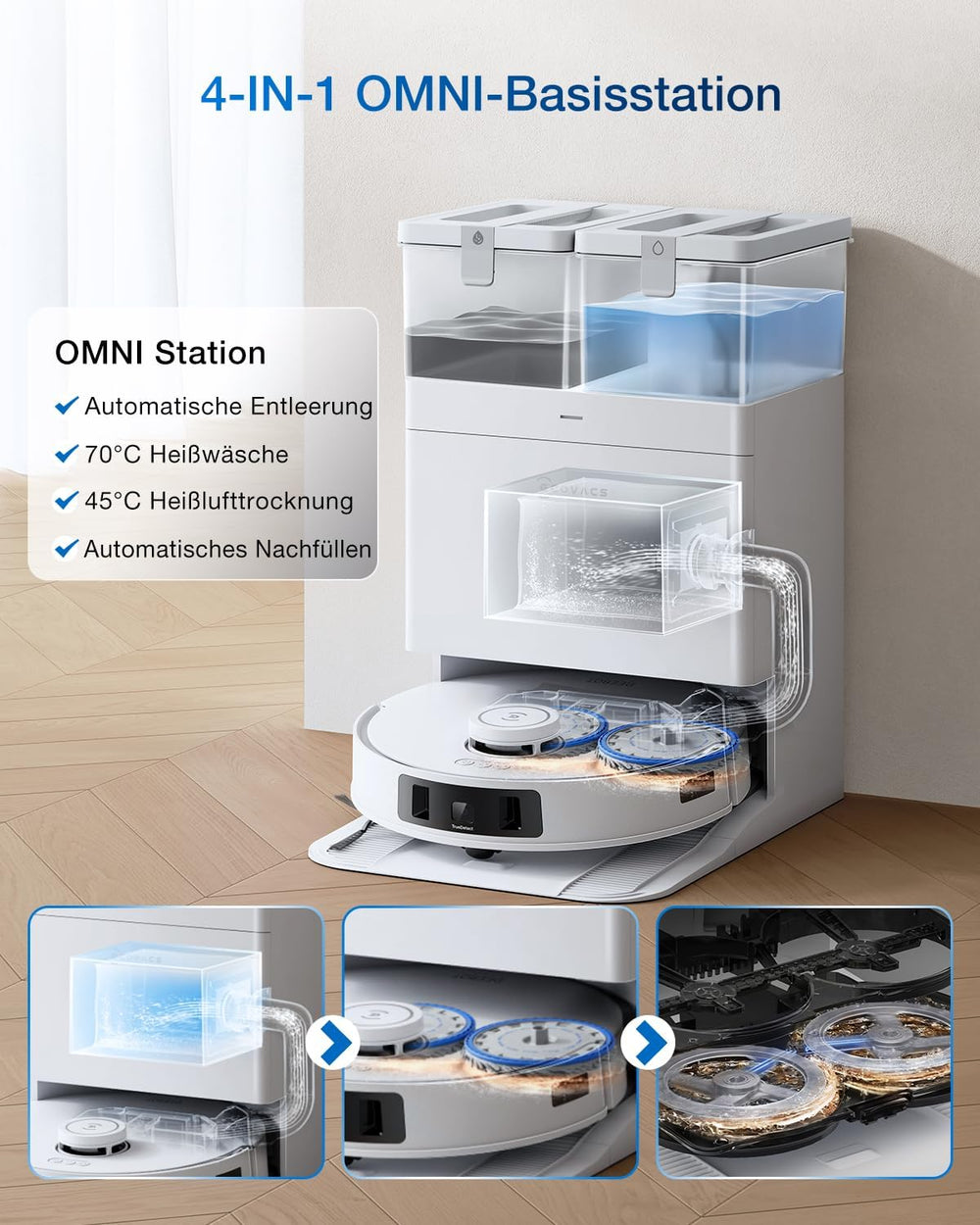 ECOVACS DEEBOT X1 OMNI, Staubsaugerroboter mit Wischfunktion und multifunktionaler Reinigungsstation