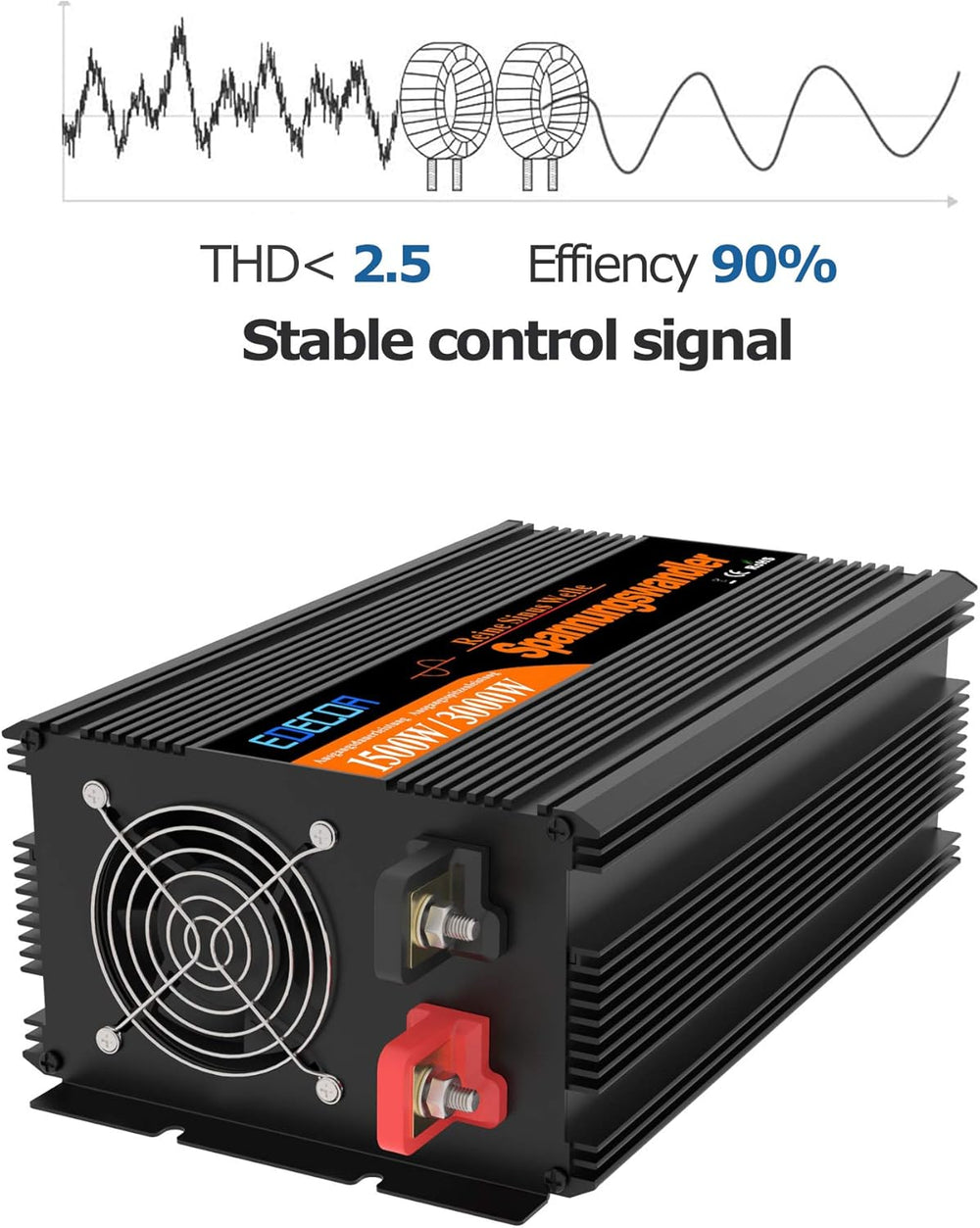 EDECOA Spannungswandler 24v 230v Wechselrichter Reiner Sinus 1500w 24v 220v Konverter 24v auf 230v m