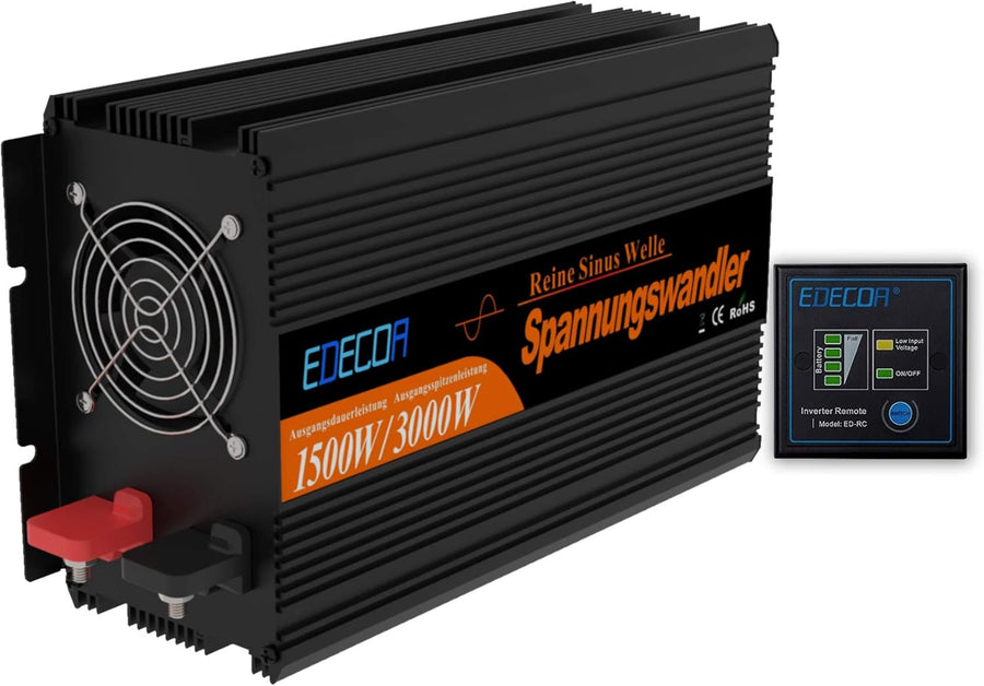 EDECOA Wechselrichter 12v 230v Reiner Sinus 1500w Spannungswandler mit Fernbedienung 1500w Pro, 1500
