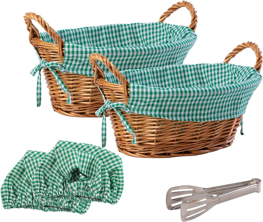 eGenuss 2 ländliche dicke Weide Brotkörbe + 2 herausnehmbare Baumwolleinlagen + 2 atmungsaktive Baum