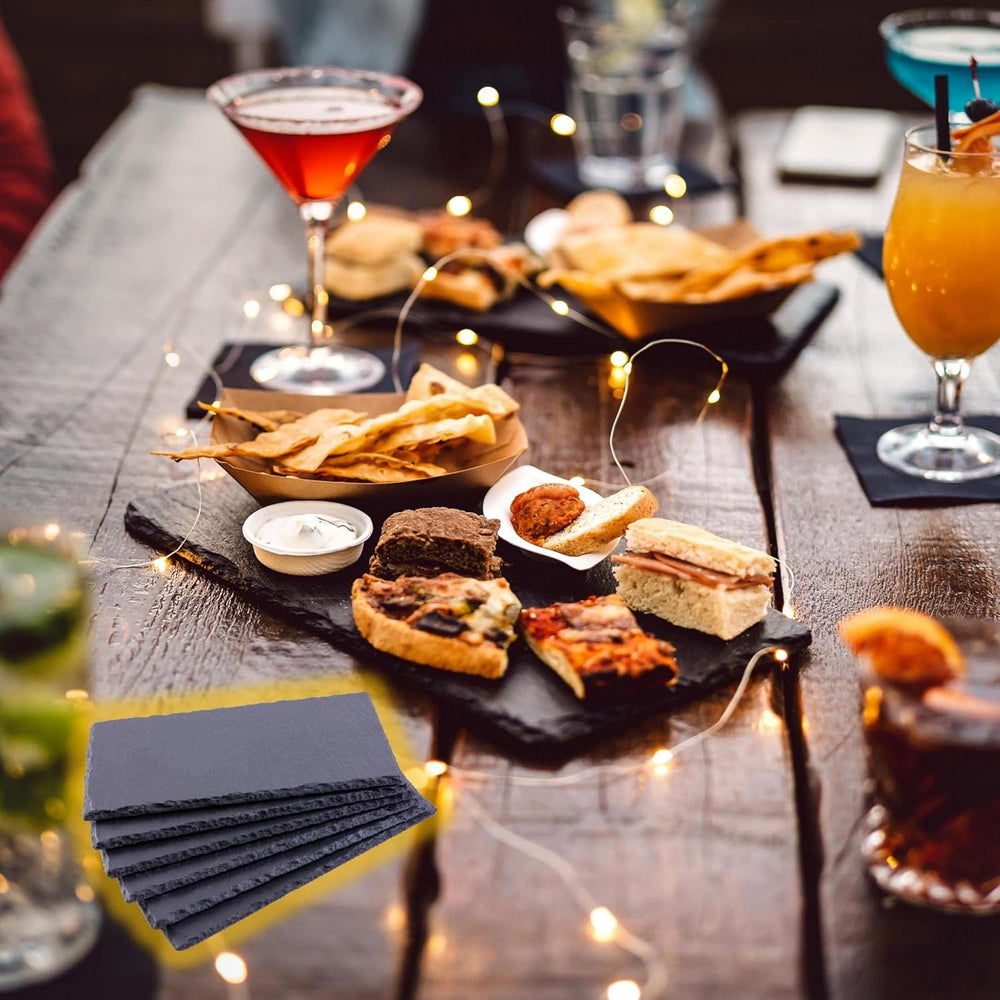 eGenuss 12er-Set Schieferplatten Dessertteller Sushi Geschirr schwarz Teller Schiefer Serviertablett