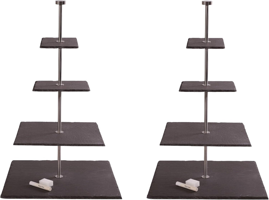 eGenuss 2er-Set moderne 4-stöckige Etagere mit Edelstahlstange und eckige antrazite Schieferplatten
