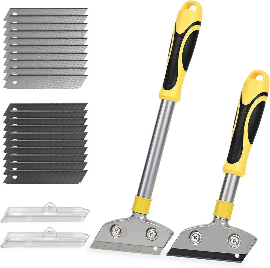 EHDIS 2 Stück Tapetenentferner Set mit 20 Ersatzklingen - Tapetenschaber mit Langer Gummigriff und F