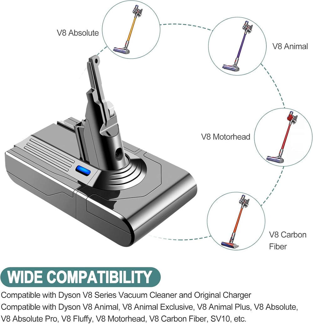 EICHXO 21.6V 4500mAh Ersatzakku Kompatibel mit Dyson V8 Akku Li-Ionen Batterie für V8 Absolute Anima