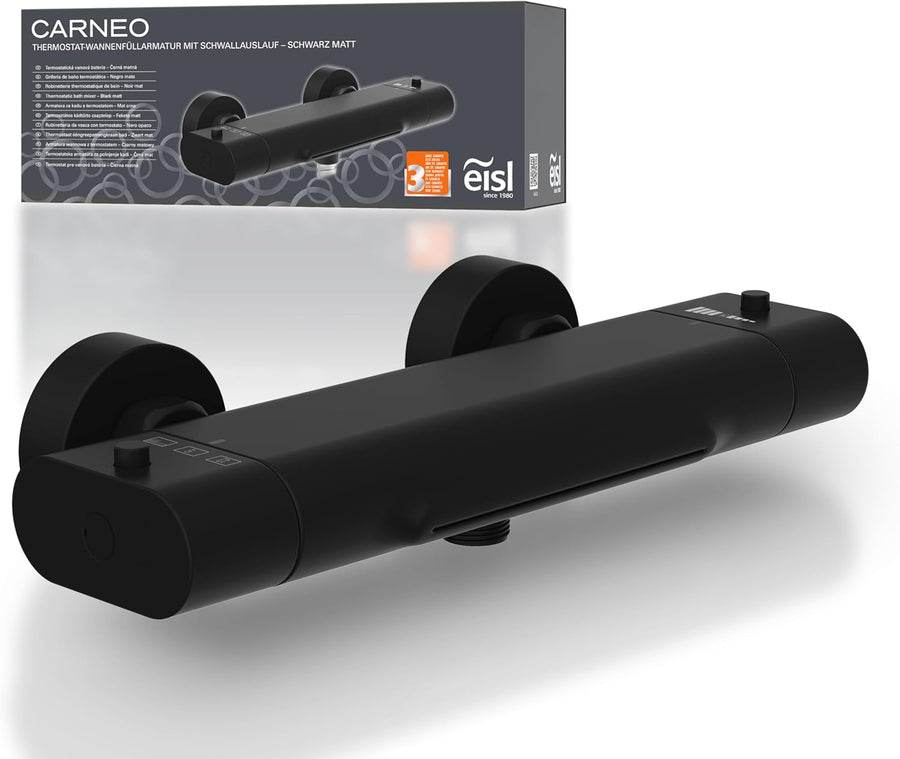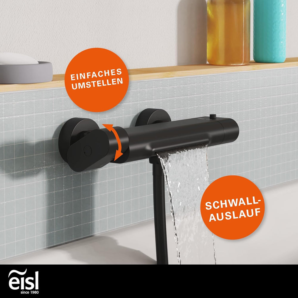 EISL Badewannenarmatur CARNEO, Mischbatterie mit Thermostatregulierung in Schwarz matt, Wasserfall-A