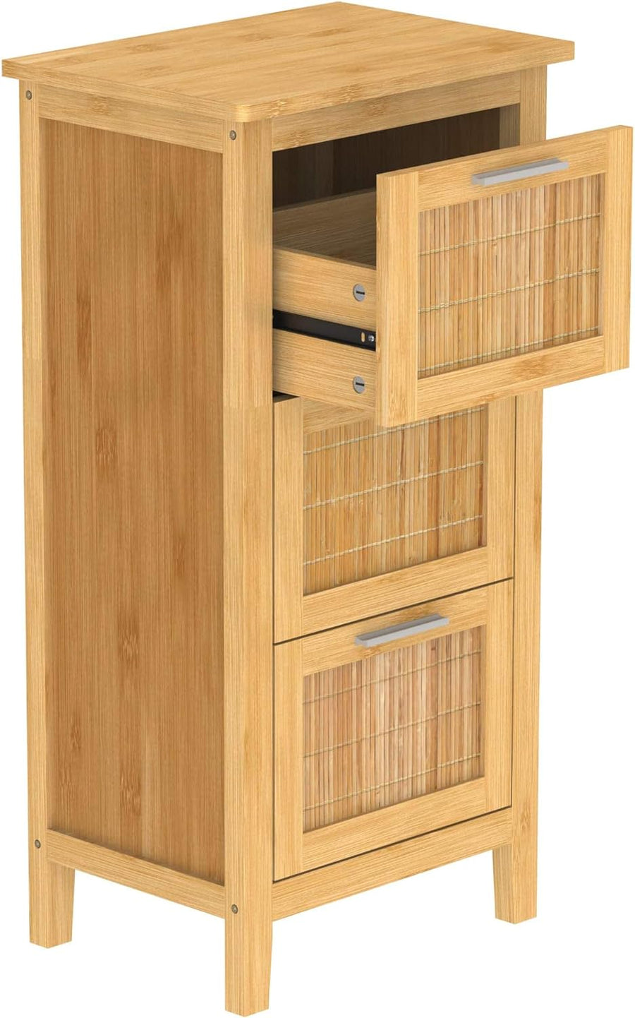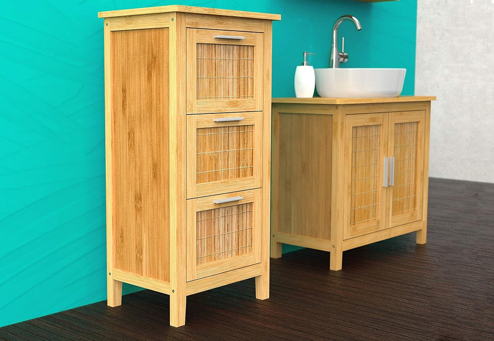 EISL Badezimmer Unterschrank, Badschrank schmal mit 3 Schubladen, nachhaltige Badmöbel Bambus, BMBA0