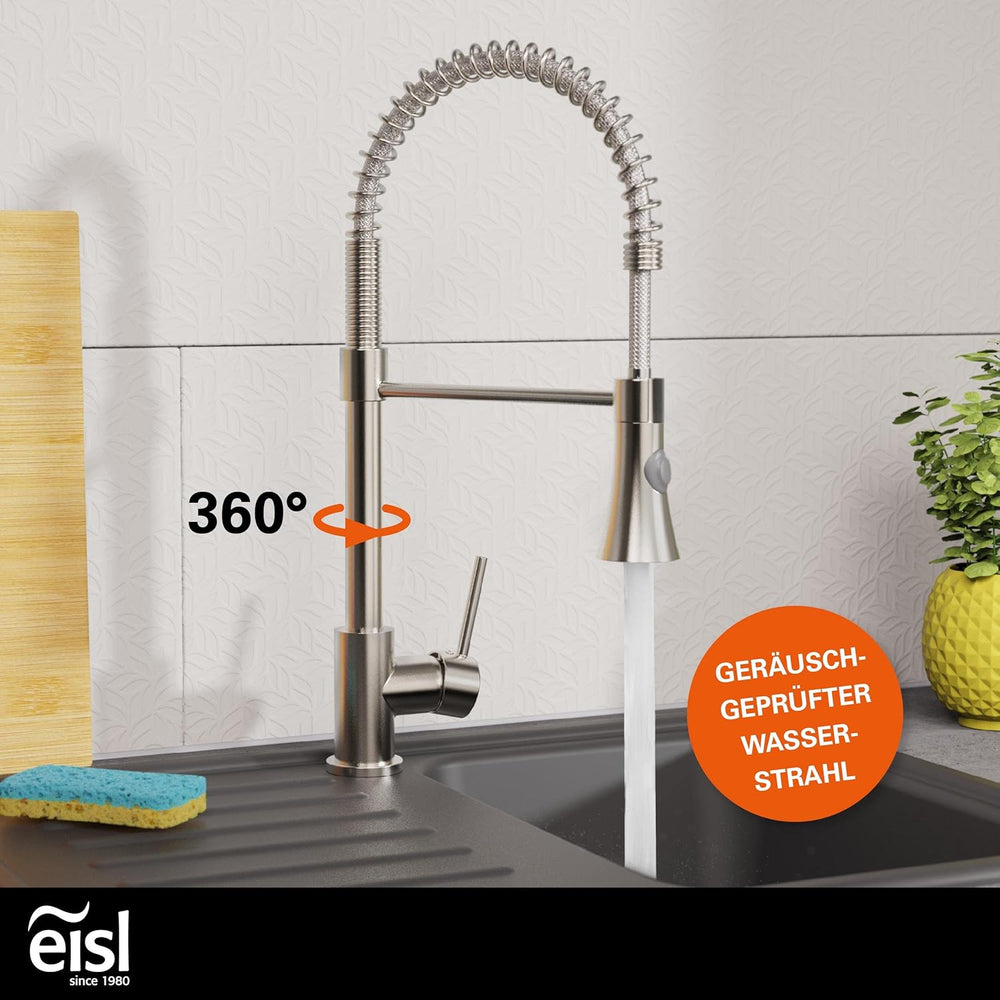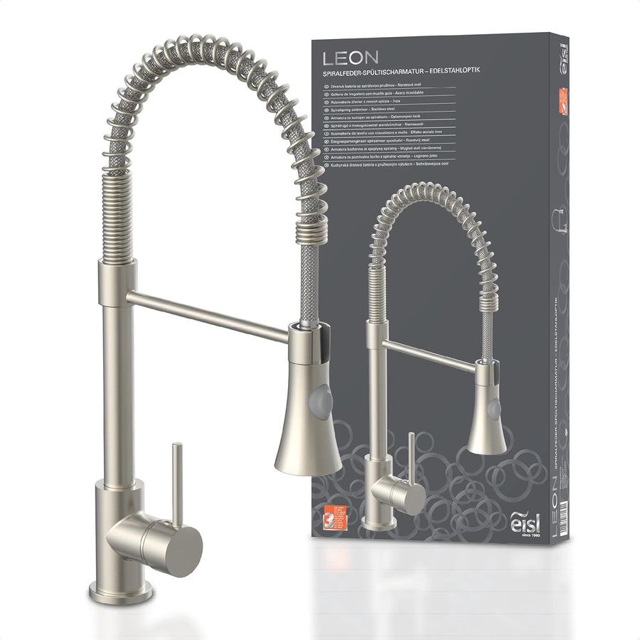 EISL LEON Spiralfeder-Küchenarmatur Edelstahl mit ausziehbarer Geschirrbrause, Wasserhahn Küche mit