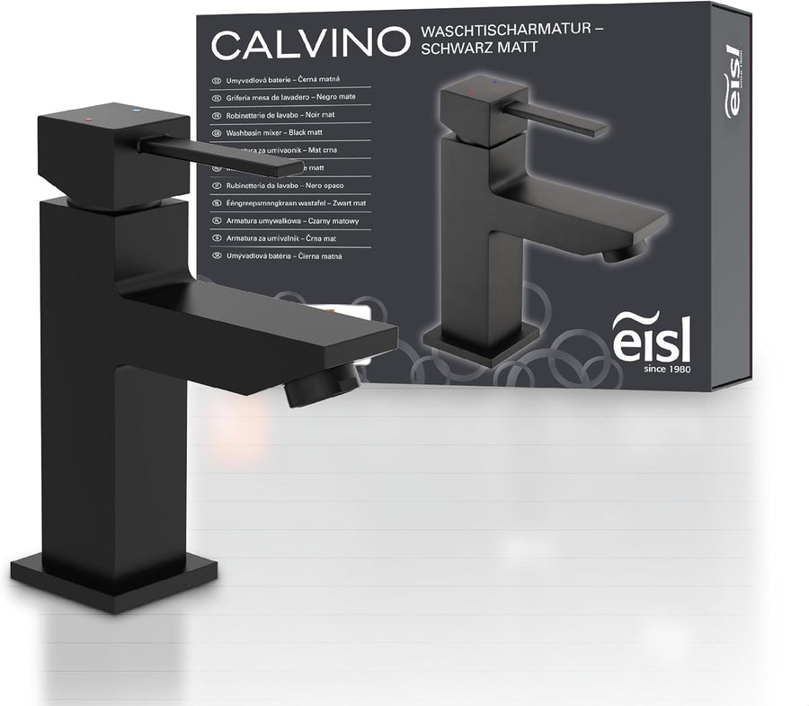 EISL NI075THI-B CALVINO Wasserhahn Bad schwarz-matt eckig, Waschtischarmatur mit kantigem Design, mo