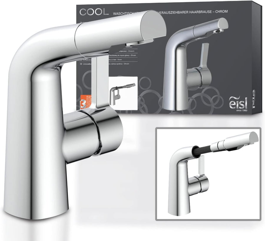 EISL COOL Waschtischarmatur mit herausziehbarer Brause zum Haarewaschen, wassersparender Wasserhahn,