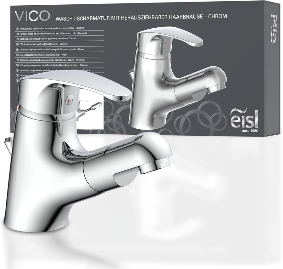 EISL NI075TCO VICO Waschtischarmatur Bad, Wasserhahn Bad mit Haarbrause, Badarmatur mit ausziehbarer