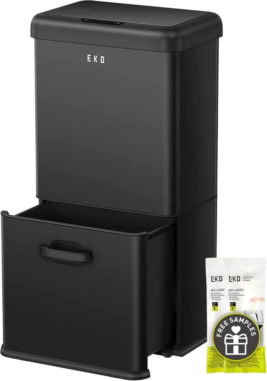EKO Mirage Plus Mülleimer mit 3 Fächer, 2 x 15 L und 30 L, Recycler Mülleimer mit Sensor, 3 Kunststo
