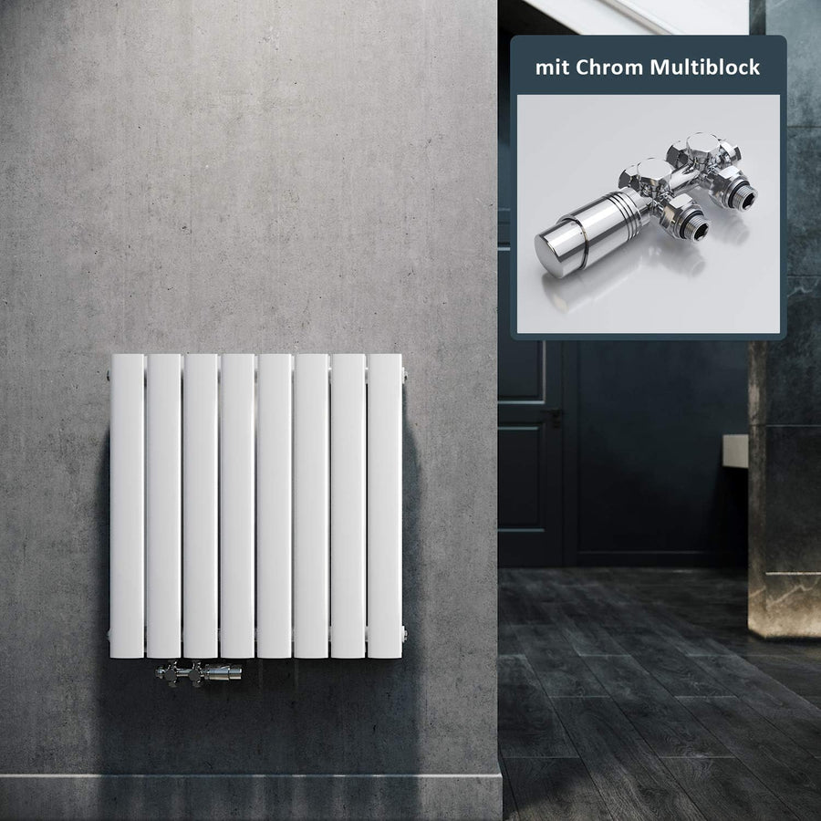 ELEGANT Design Heizkörper Horizontal mit Chrom Multiblock 630x616mm Doppellagig Weiss Badezimmer/Woh
