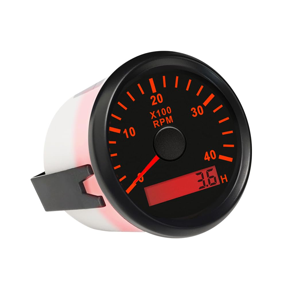 ELING 52 mm Drehzahlmesser 4000 U/min Messgerät mit roter Hintergrundbeleuchtung und Betriebsstunden