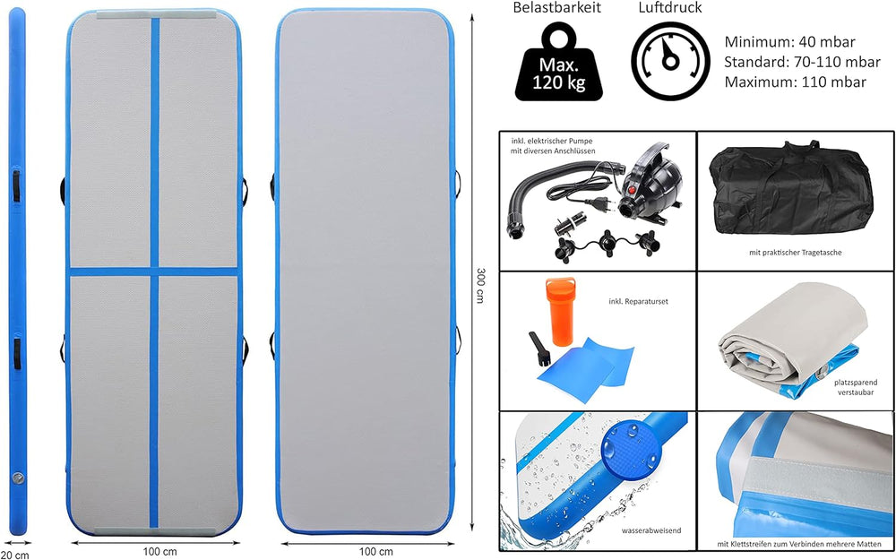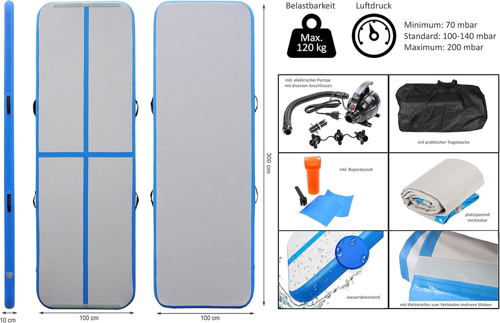 Airtrack/Tumbling/Gymnastik Matte Turnmatte in Blau/Pink, aufblasbar, rutschfest, wasserfest, stossd