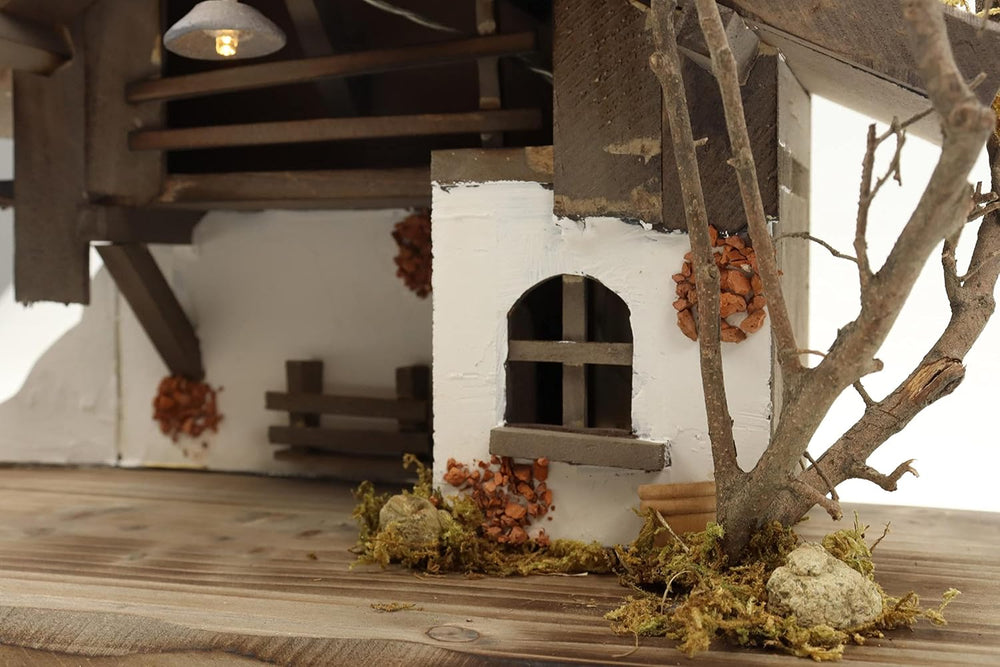 Holz Krippenstall, Weihnachtskrippe mit Licht 38*18*21cm (OHNE Krippenfiguren), OHNE Krippenfiguren