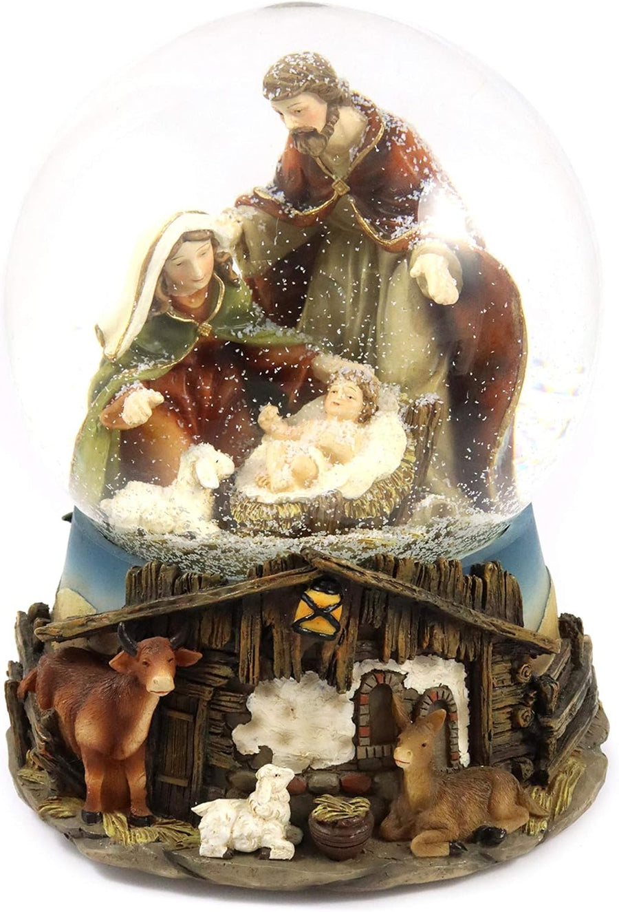 Creation Gross Schneekugel mit Spieluhr (Stille Nacht) Krippenspiel (Maria, Josef, Jesus) H.: 20cm Ø