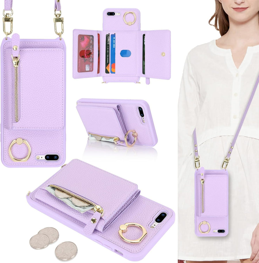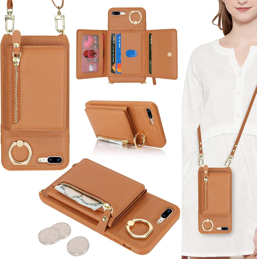 ELTEKER Handyhülle für iPhone 7 Plus/8 Plus Hülle mit Band Kartenfach Handykette Geldbörse,Leder Kla