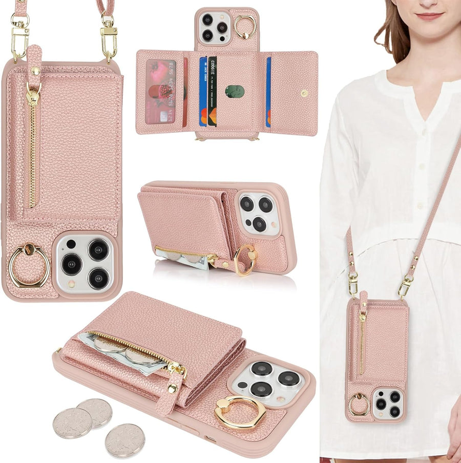ELTEKER Handyhülle für iPhone 15 Pro Max Hülle mit Band Kartenfach Handykette Ringhalterung Geldbörs