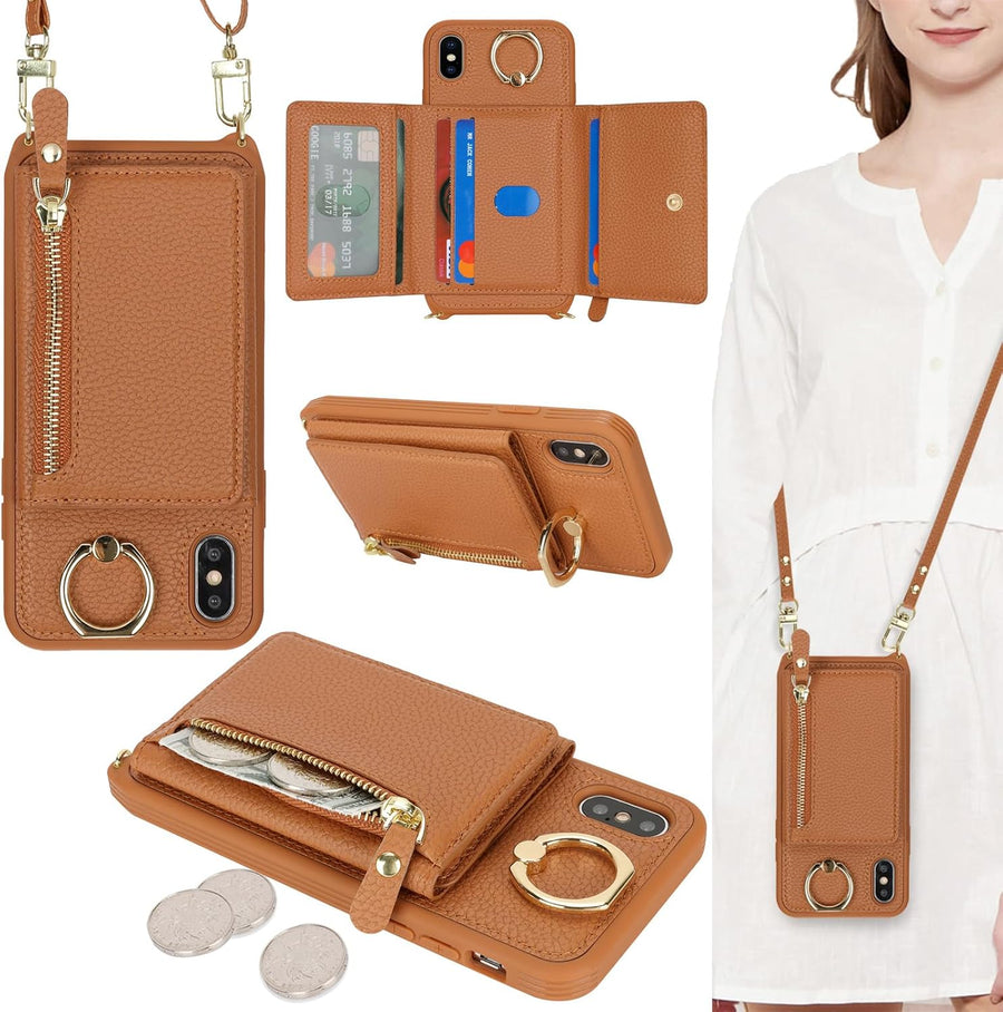 ELTEKER Handyhülle für iPhone XS Max Hülle mit Band Kartenfach Handykette Ringhalterung Geldbörse,Le
