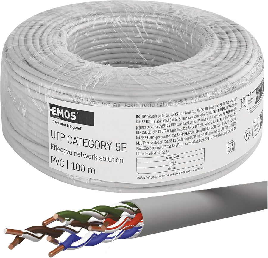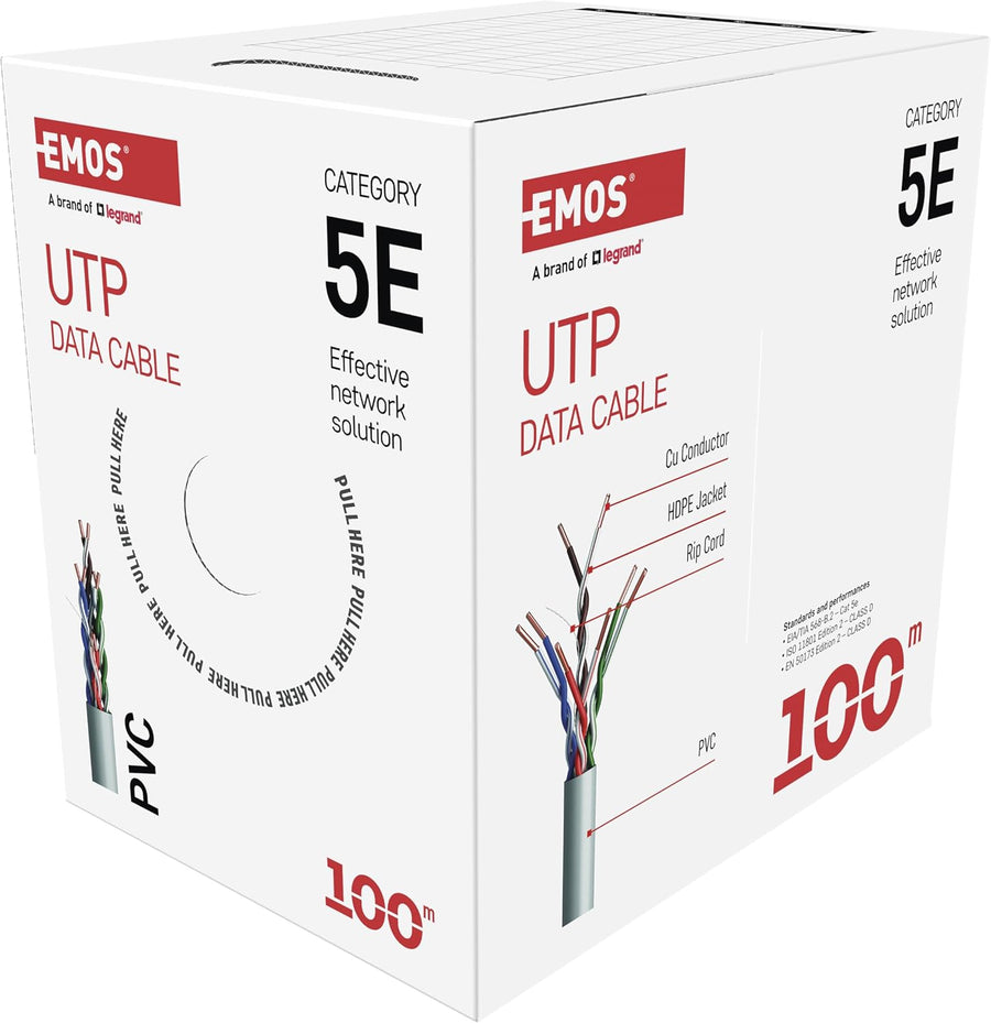 EMOS - UTP Netzwerkkabel CAT 5e, 100m, PVC - CAT5e-Patchkabel UTP - Cu-Draht- Gigabit LAN Kabel - un