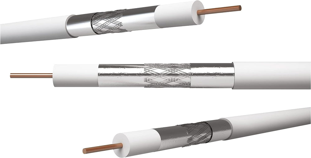 EMOS Antennenkabel 100m weiss, Koaxialkabel für SAT, TV und CCTV, Typ CB50F, doppelt geschirmtes Fer