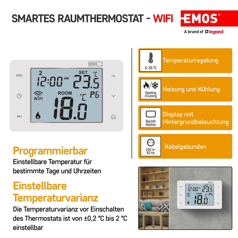 EMOS GoSmart WiFi Raumthermostat mit App, programmierbarer Smart Thermostat für Heizung, Kühlung, dr