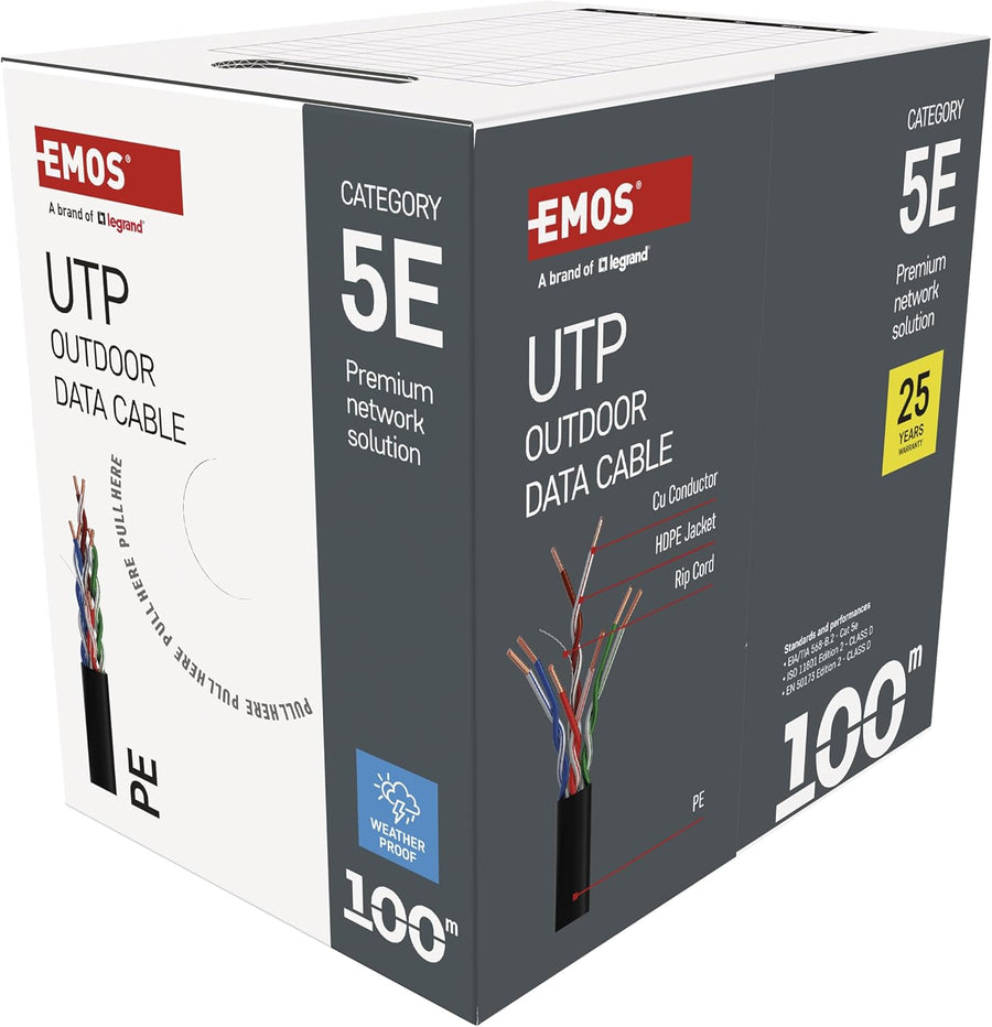 EMOS - UTP Netzwerkkabel CAT 5e, 100m, PE - CAT5e-Patchkabel UTP - Gigabit LAN Kabel - ungeschirmtes