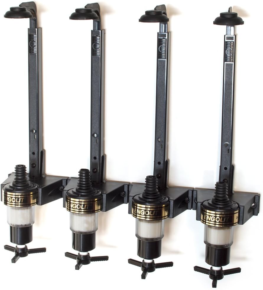 ENGOLIT 2 cl Dosierer (Drehkreuz) & Flaschenhalter 4er-Set inkl. Metall-Montageschiene für Wandmonta