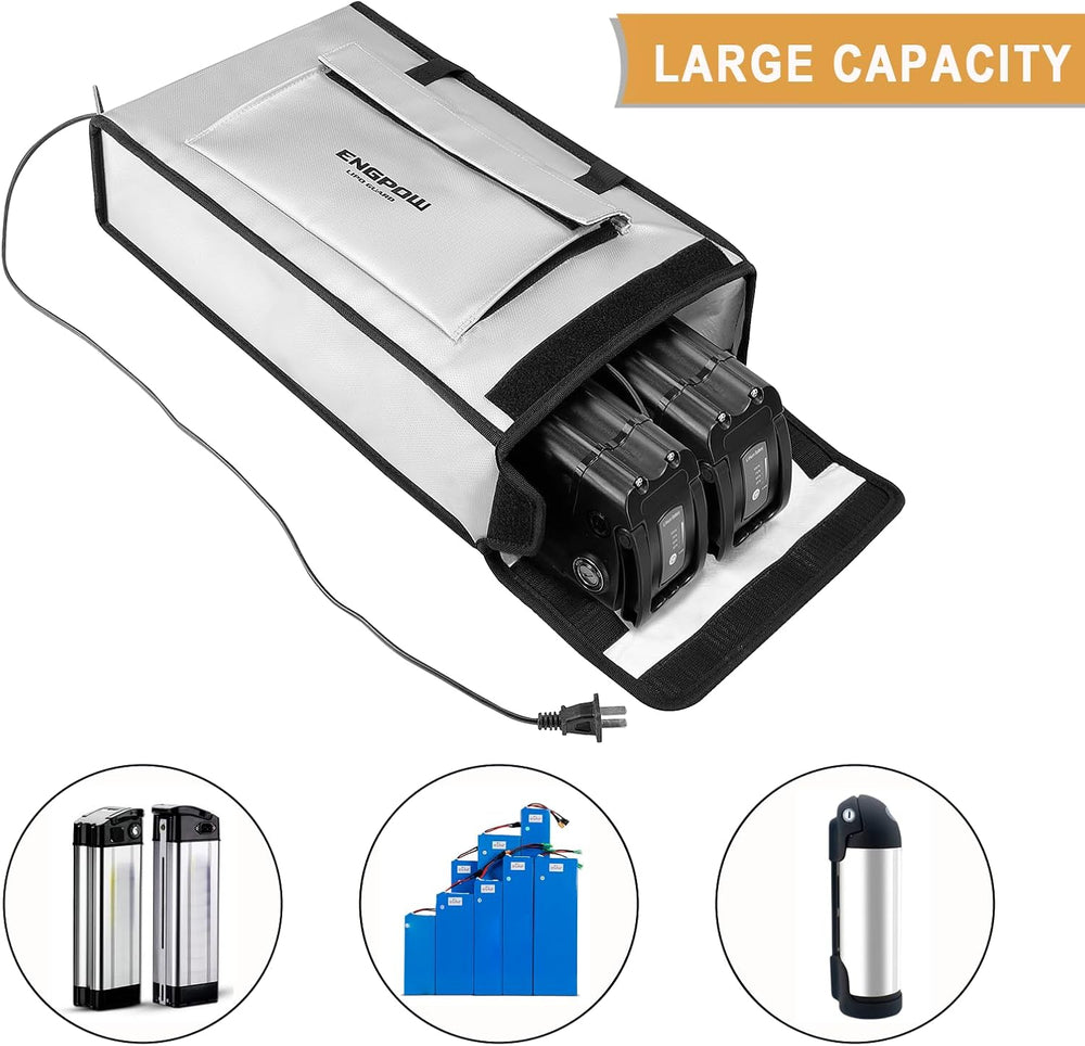 Ebike Akku Tasche Feuerfest bis 2000°F Batterie Tasche Akkutasche Wasserdicht & Explosionssicher,Lip