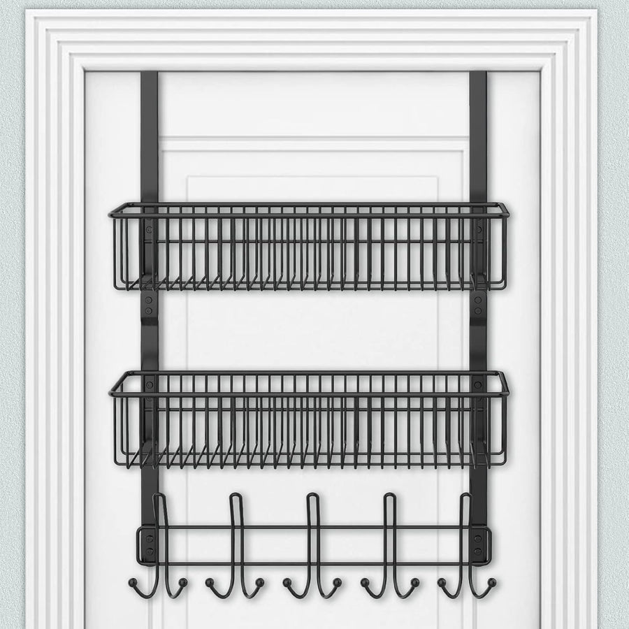 ENONCI Türhaken Zum Einhängen 15 Kleiderbügel Hakens mit 2 Mesh Korb über Tür Lagerung Rack, Kleider