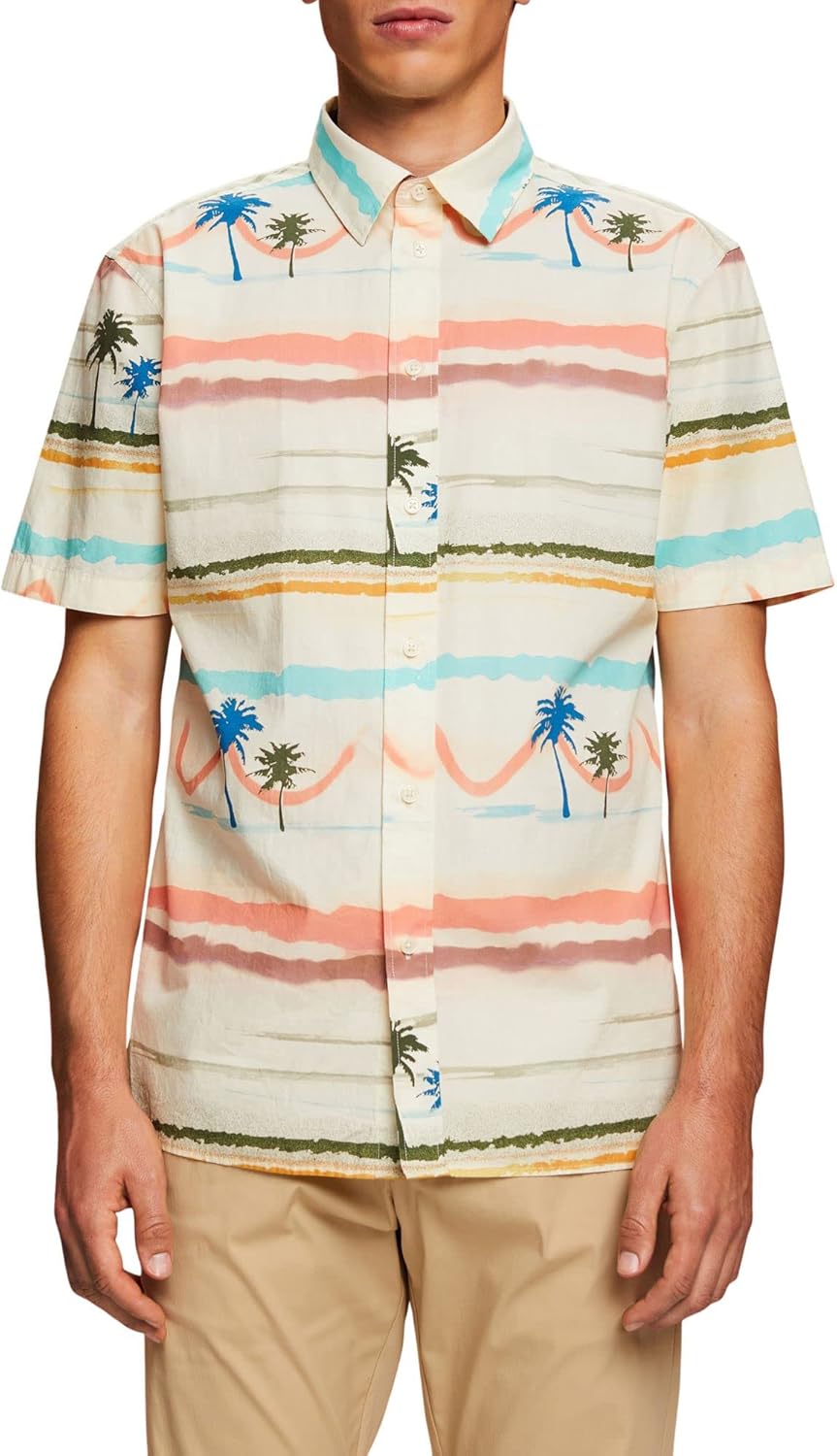edc by Esprit Gemustertes Kurzarm-Hemd, 100% Baumwolle XXL 100/White, XXL 100/White