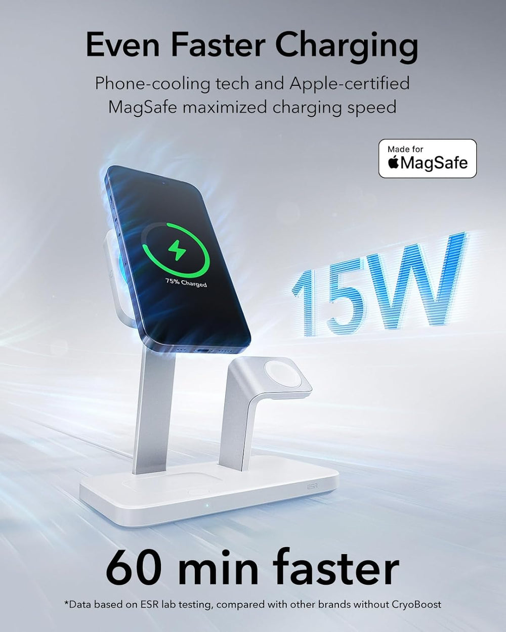 ESR 3 in 1 Ladestation für Apple Watch und iPhone, 25W Magsafe ladestation, Induktive Ladestation fü