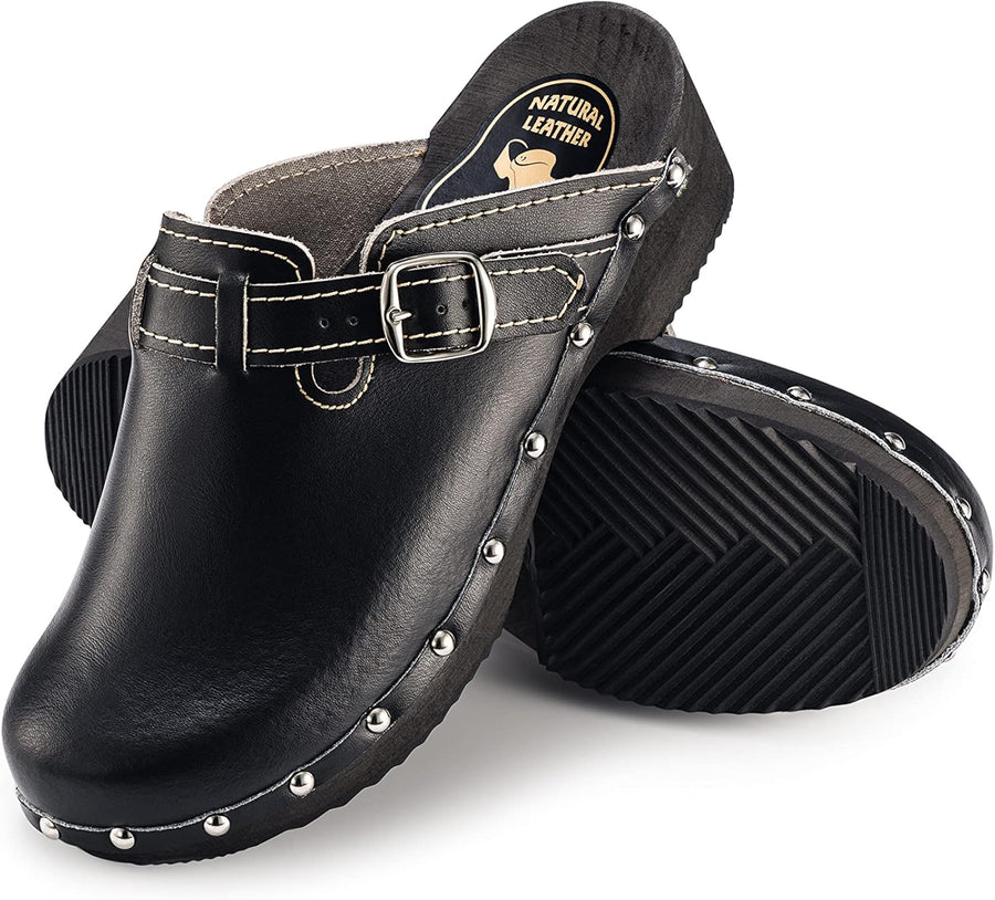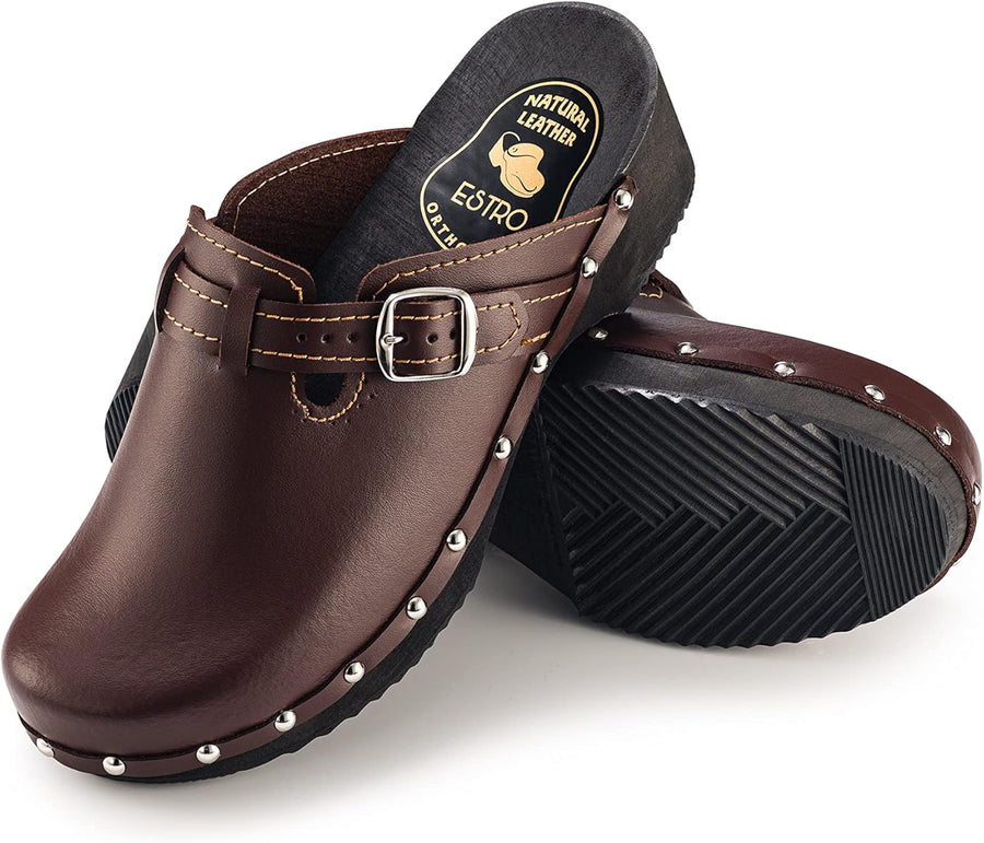 ESTRO Clogs Damen Holz Leder - Clogs Herren Damen Clogs Leder Holzschuhe Herren Holzclogs Damen mit