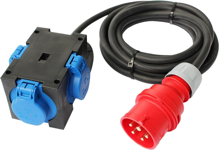 CEE Adapter Stromverteiler CEE 16A 400V - 3 x 230V Kraftstrom Baustrom Verteiler mit 5m Zuleitung