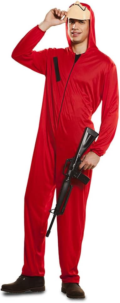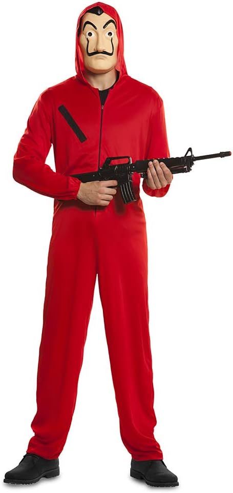 Original Casa de Papel House Räuber Overall und Maske (Grösse S), Erwachsenenkostüm, Rot, S