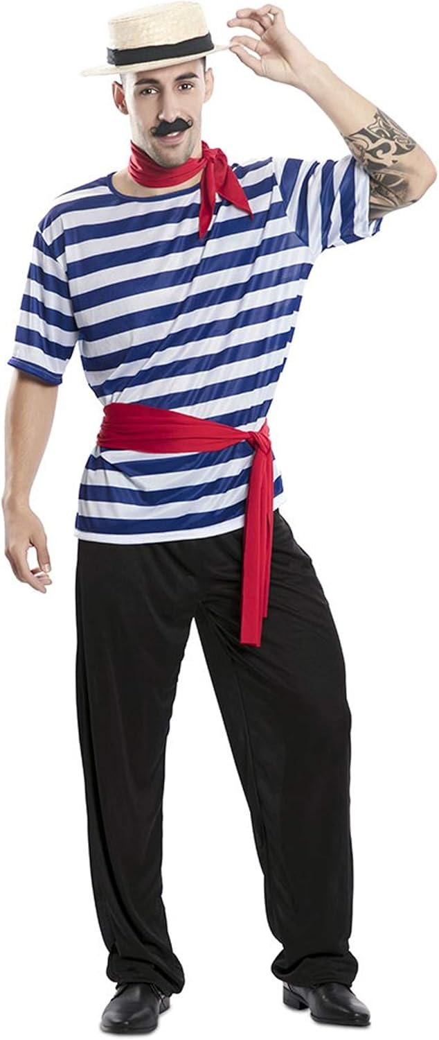 KULTFAKTOR GmbH Gondolier-Kostüm für Herren Faschingskostüm schwarz-blau-rot - S
