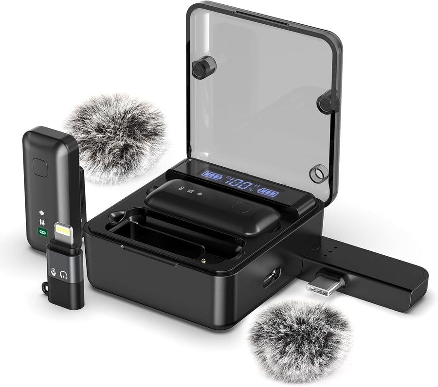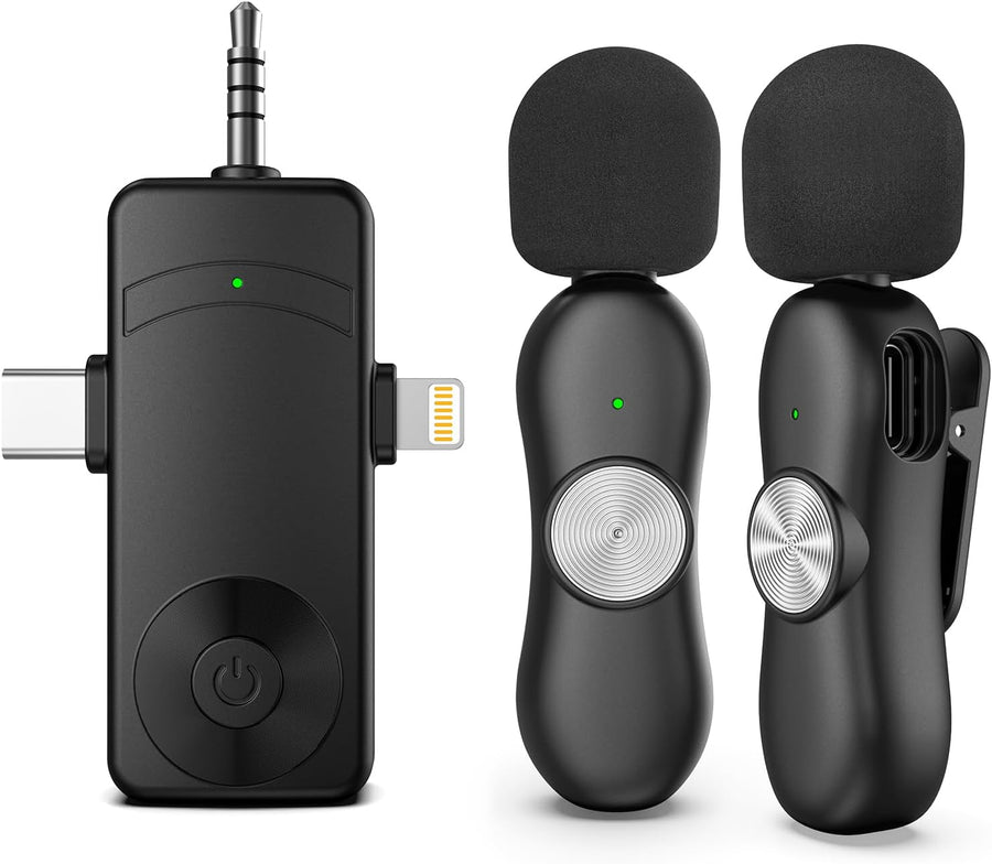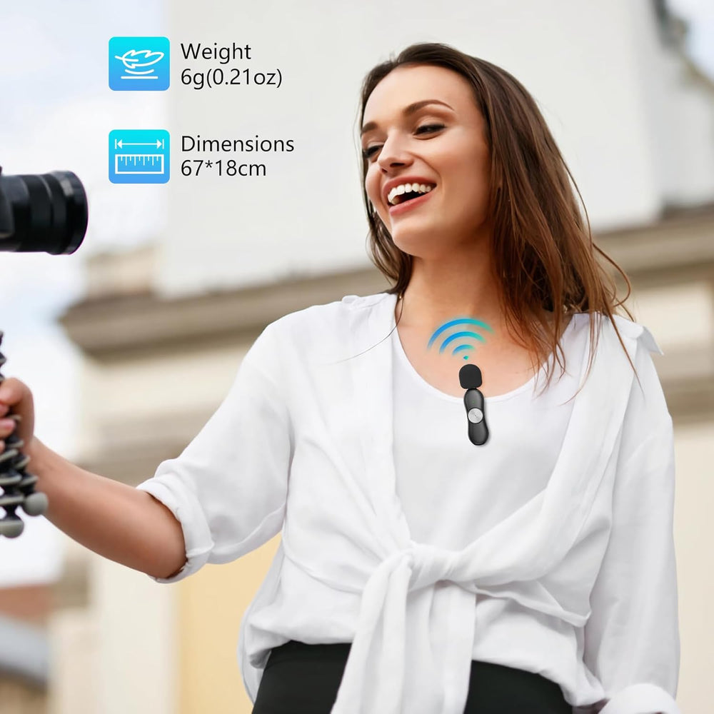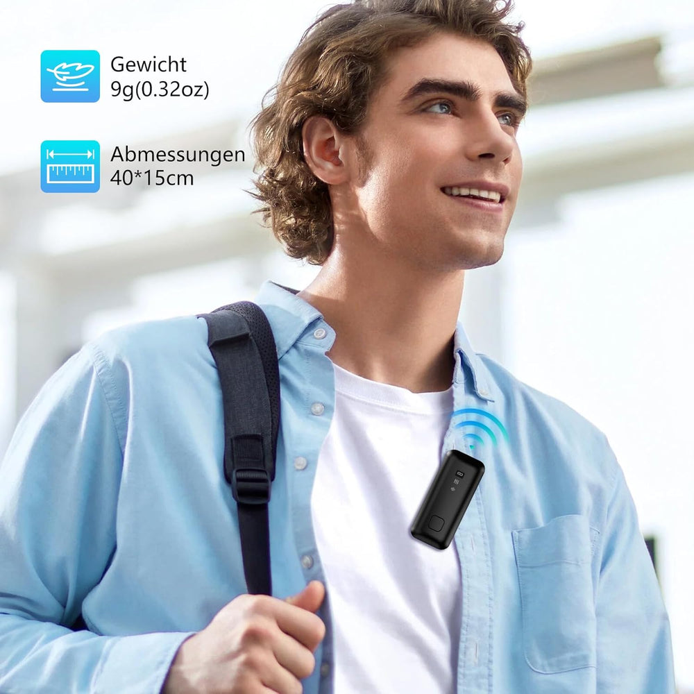 EVARY Lavalier Mikrofon Wireless für iPhone/Android, 25M Langstreckenübertragung, Plug and Play Kabe