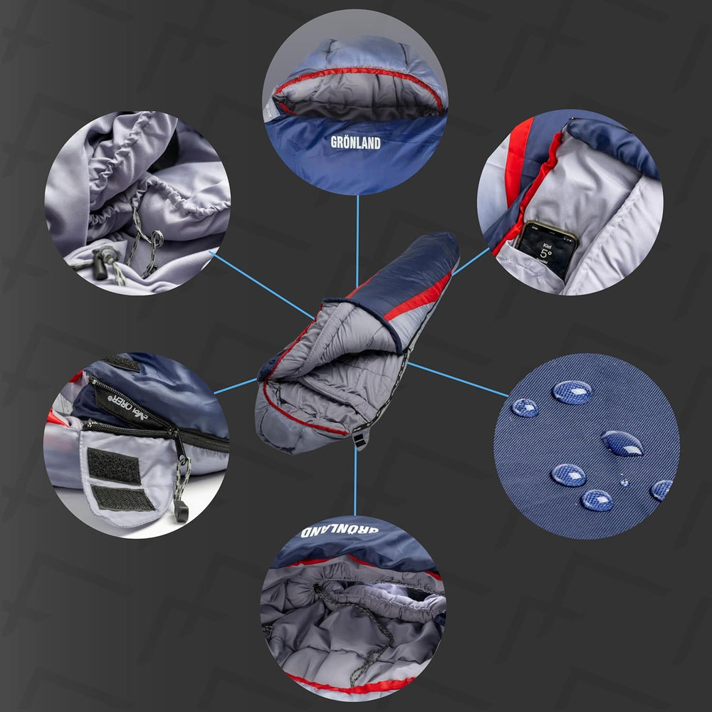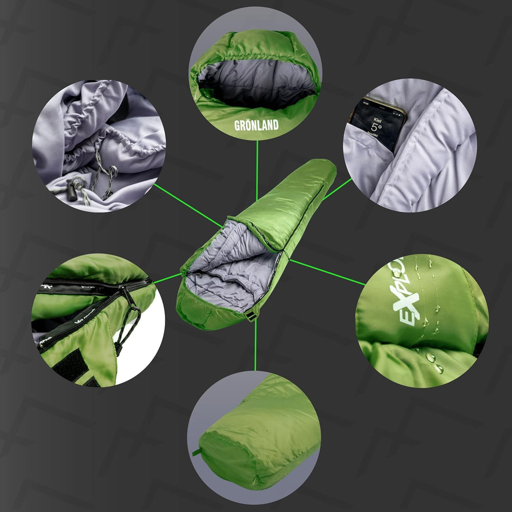 EXPLORER® GRÖNLAND Schlafsack -23°C -5°C [350GSM] 3-4 Jahreszeiten Winter Mumienschlafsack Erwachsen