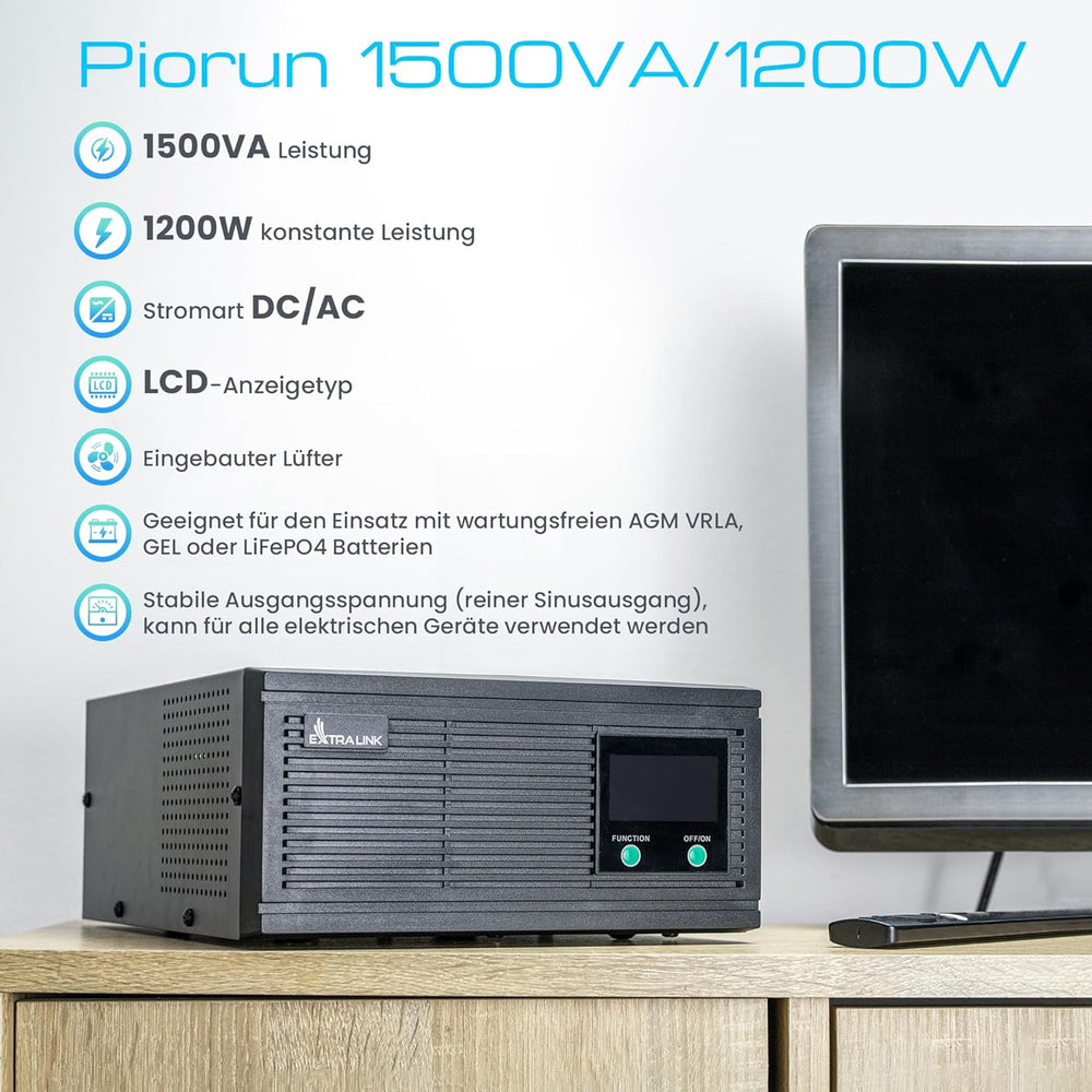 Notstromversorgung UPS EXTRALINK Piorun 2000VA/1600W Wechselrichter Reiner Sinus 24VDC USV Inverter