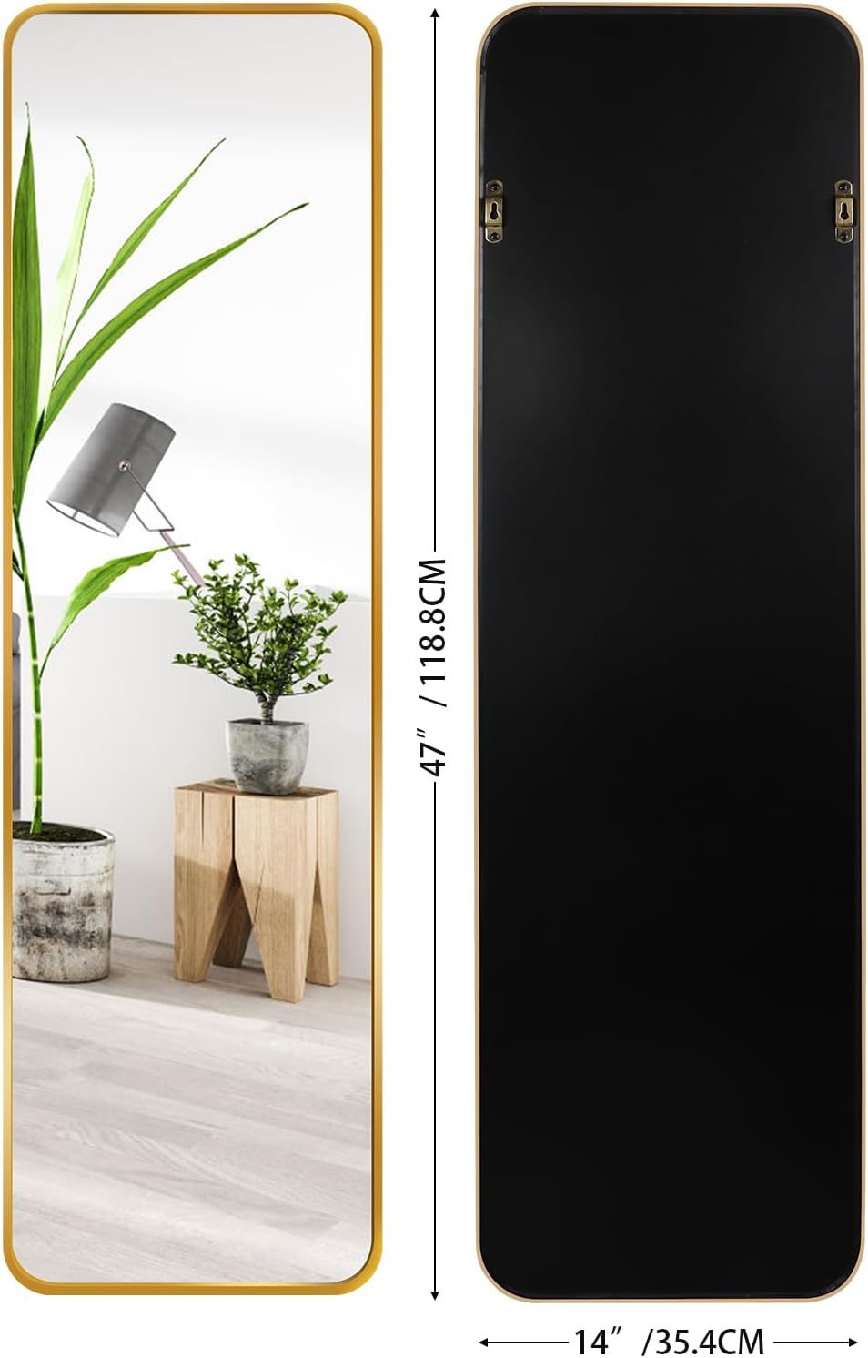 EXYGLO 120 x 35cm Wandspiegel Ganzkörperspiegel mit Metallrahmen, HD Spiegel Hängespiegel für Schlaf