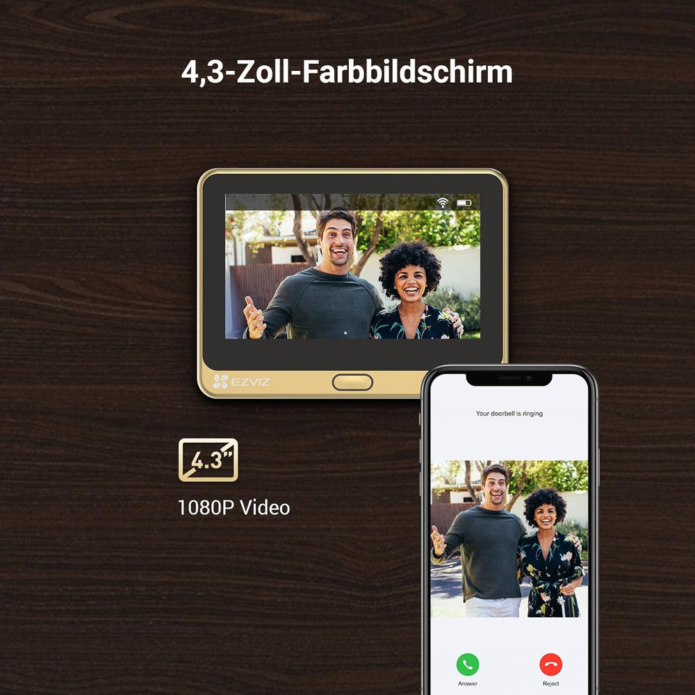 EZVIZ kabellose Türspion-Kamera mit 4,3 Zoll Farbbildschirm, 2MP Türklingel mit 2200mAh Akku und 146