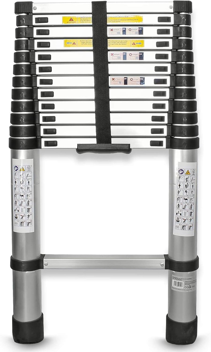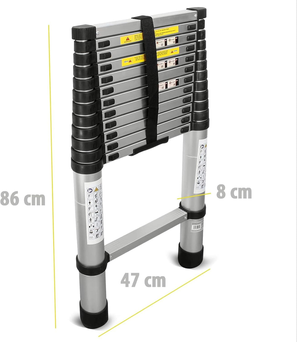 Eaxus® Teleskopleiter 3,8m - DIN EN 131 Aluminium Mehrzweckleiter Ausziehbar mit 13 Stufen, Silber 3