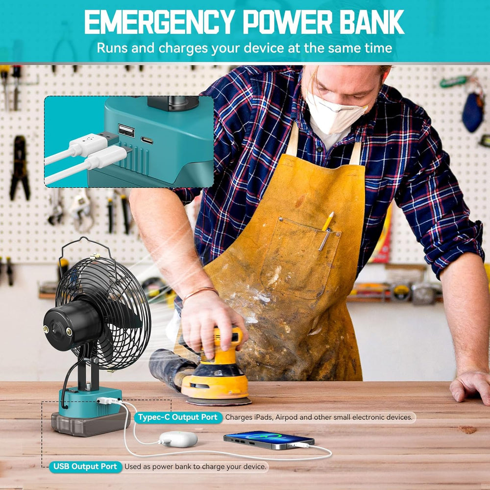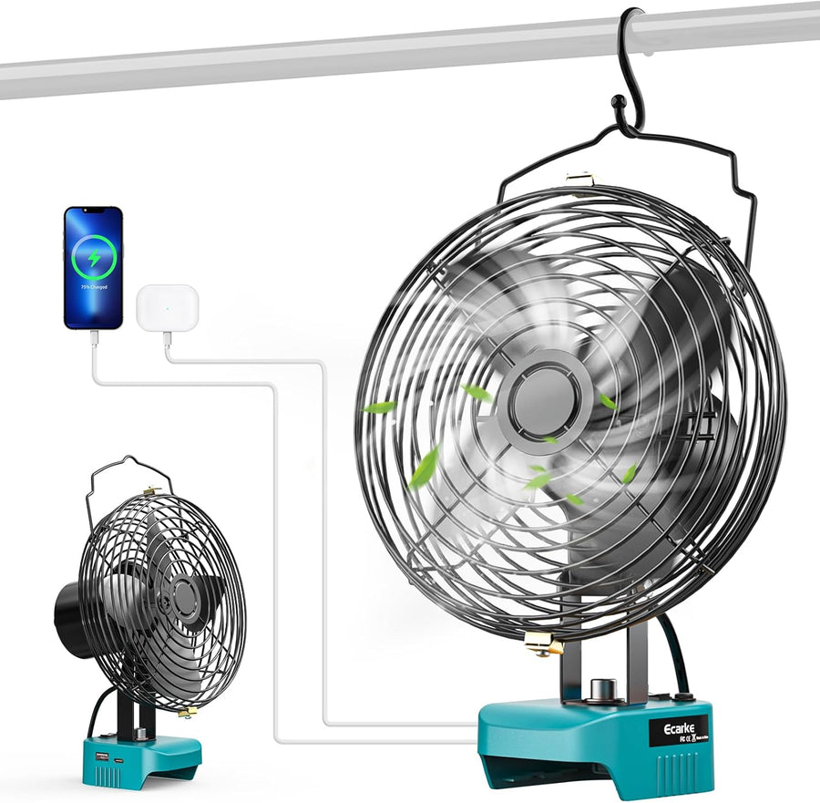 Ecarke Akku-Ventilator 6 Zoll kompatibel mit Makita 18V Akkus, tragbarer Lüfter mit USB- & Typ-C-Ans