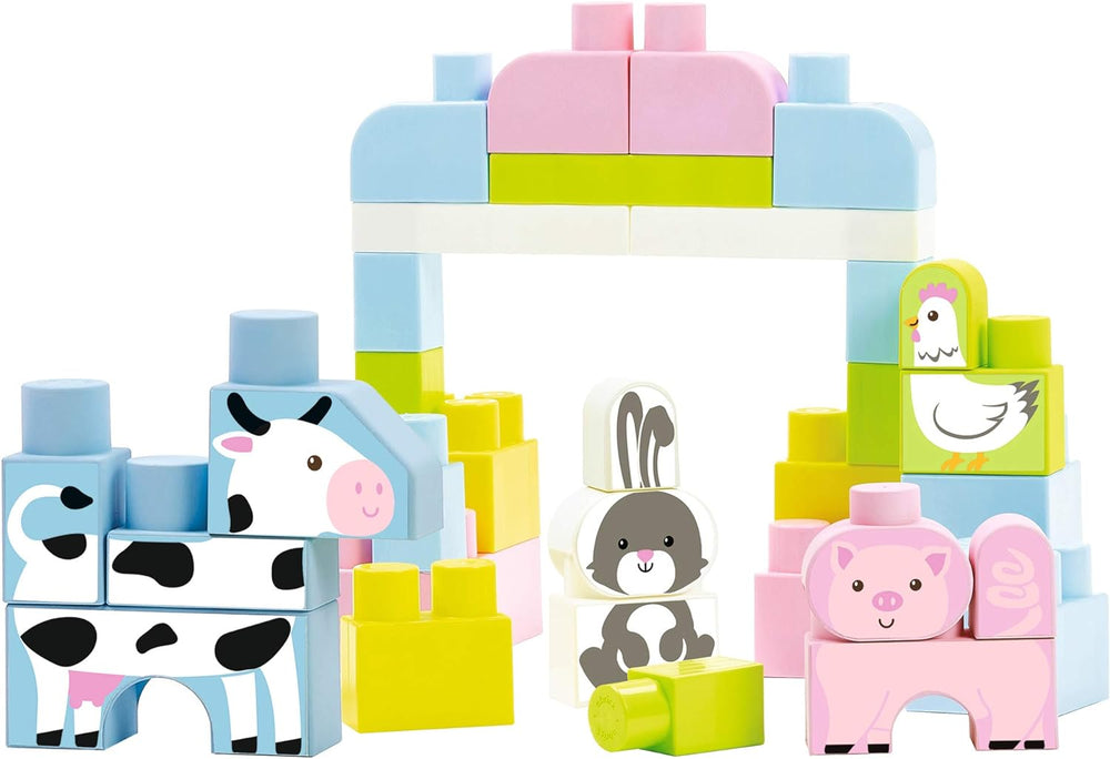 Ecoiffier – Abrick bunter Bauernhof – 50 grosse Bauklötze in Tierform, bunte XL-Bausteine in Box, fü