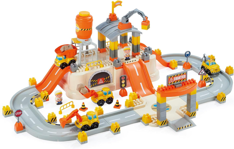 Ecoiffier – Abrick Baustellen Spielset – mit Kran, Baustellenfahrzeugen, LKW, Bausteinen, Schildern,