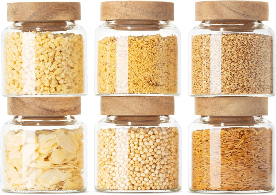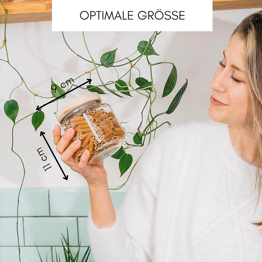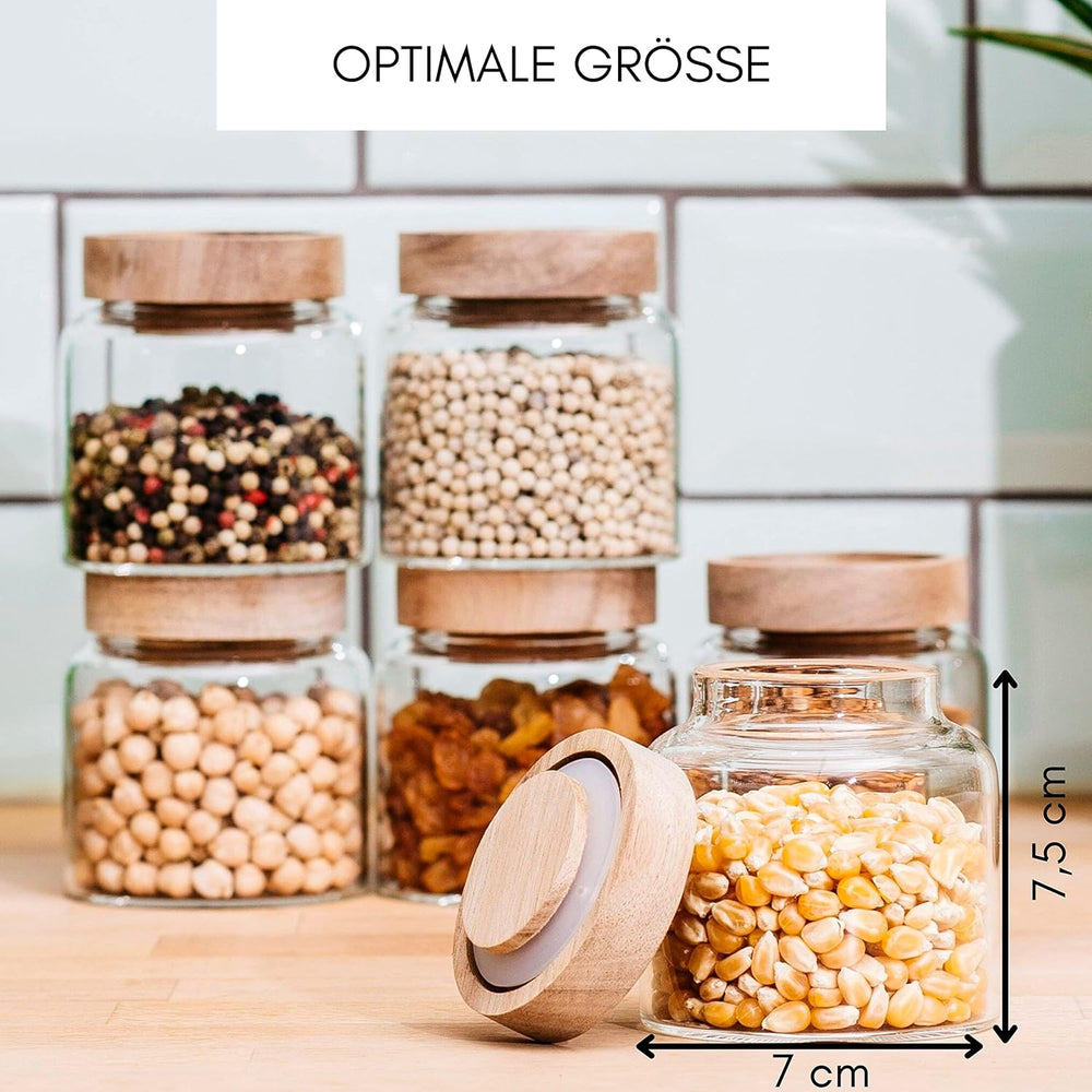 Econovo® Vorratsgläser mit Deckel (6-teilig) 170ml, Vorratsdosen aus Glas mit Holzdeckel luftdicht,